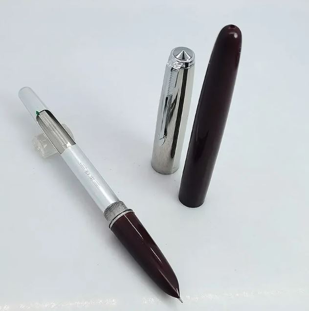 Современная версия популярной модели 70–80x годов, китайская копия Parker 51. Отличается мягким и гладким письмом. Размер Jumbo. Длина в колпачке — 14,1см, без колпачка — 13,7см, толщина — 1,1см. Вес в колпачке — 14гр, без колпачка — 9гр. Заправка пипеткой большего размера, чем у ручки S. Колпачок серебристый с бронзовым винтом.