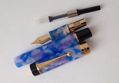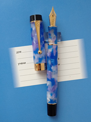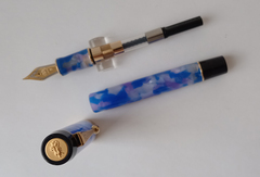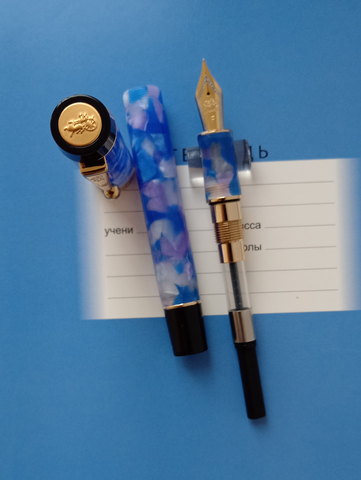 Толстая перьевая ручка из акрила. Открытое перо F (0,5 мм) из стали. Колпачок закручивается. Длина ручки в колпачке 13,8 см, длина без колпачка 12,8 см, длина в открытом виде с надетым сзади колпачком - 17,5 см. Толщина в самом толстом месте 1,1 см, толщина грип секции 1 см. Вес в колпачке 25,7 г, вес без колпачка ― 14 г. Система заправки ― съемный поршень (можно также заправлять картриджами).