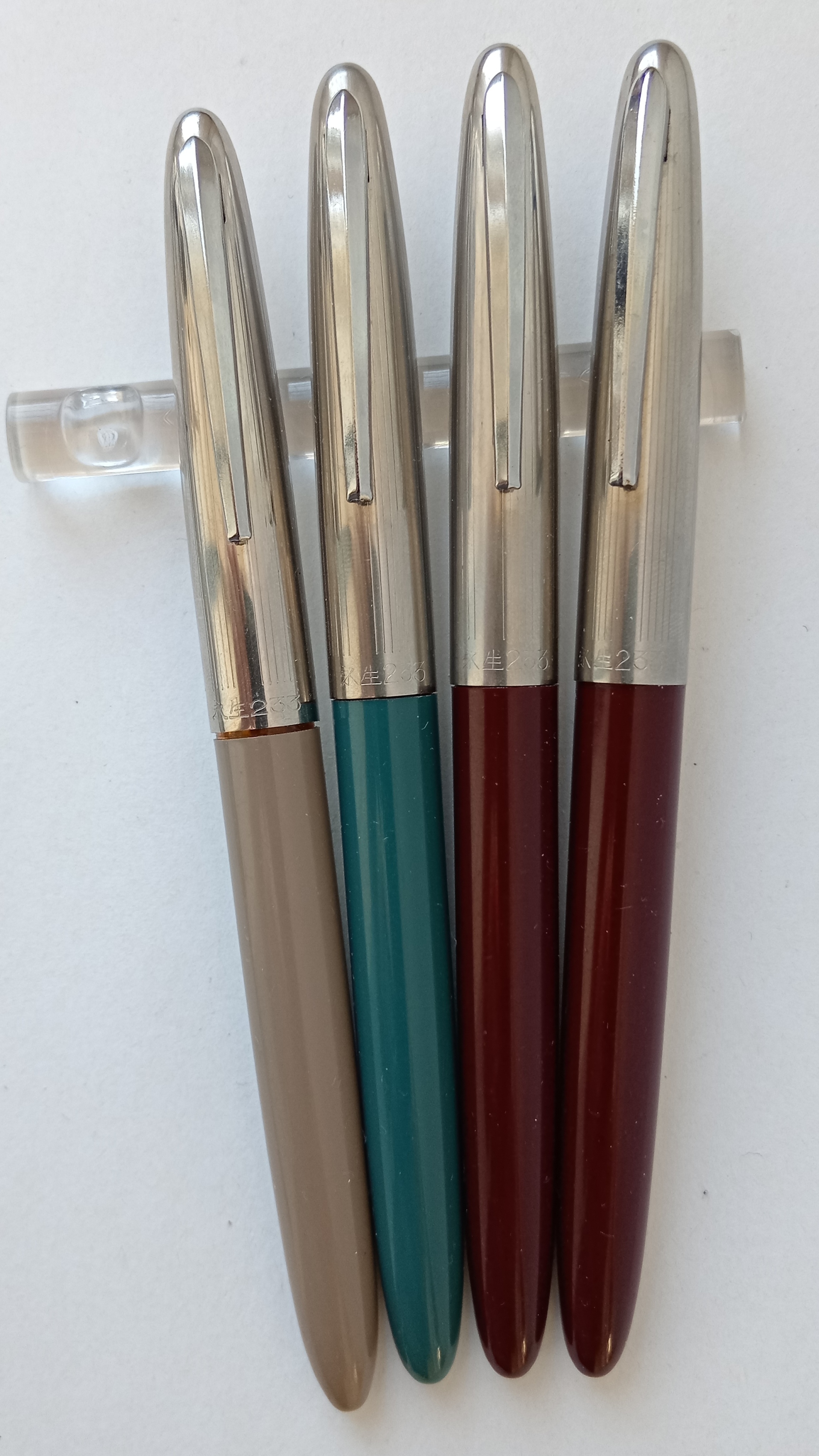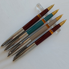 Одна из самых удачных и популярных моделей фирмы. Произведена в 80е годы. Открытое перо - сталь с иридиевым наконечником, F. Пишет легко и гладко. Система заправки - пипетка. Длина в колпачке - 14,1 см, длина без колпачка - 13,3 см, толщина - 1,1 см. Вес в колпачке - 19 гр, вес без колпачка - 12 гр.