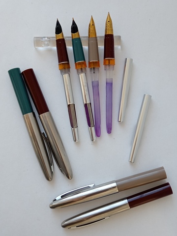 ВНИМАНИЕ: Эти ручки заправлялись и были аккуратно использованы для записи видео. После использования тщательно вымыты, пипетки окрашены в цвет чернил (они сразу окрашиваются и плохо отмываются). На эти ручки распространяется такая же гарантия 2 недели, как и на новые. В наличии 2 шт. бордовые, 1 шт. зеленая, 1 шт. бежевая.