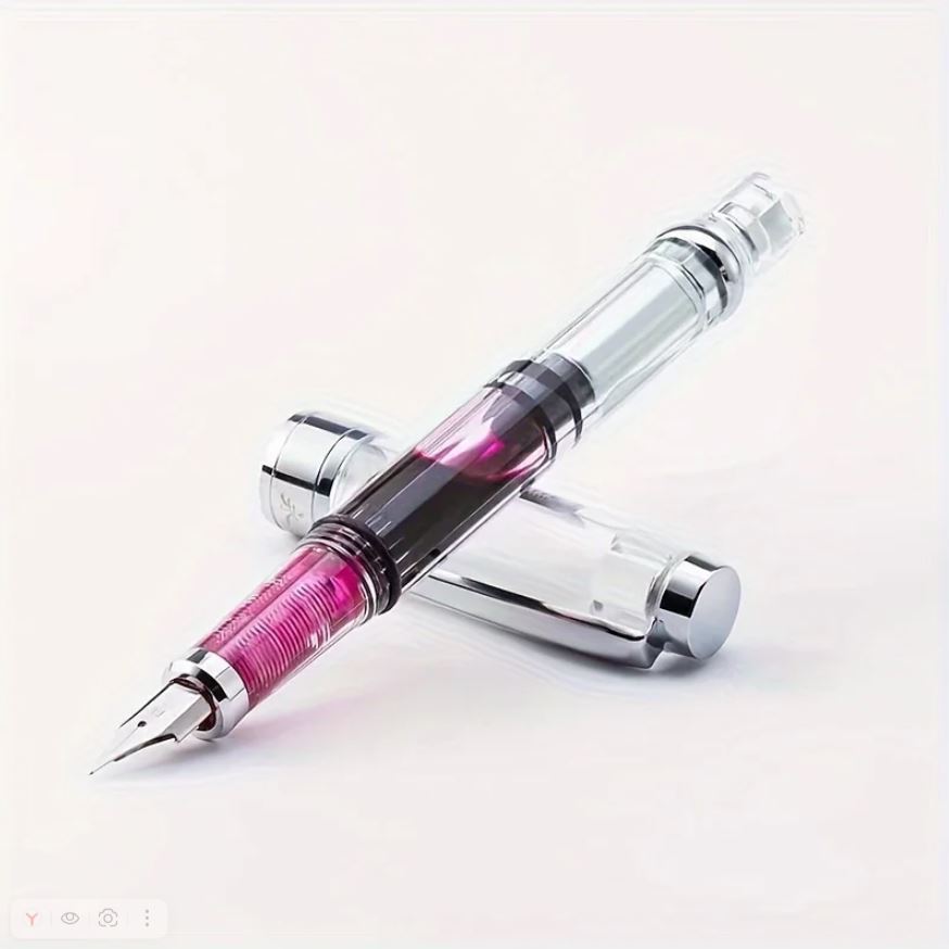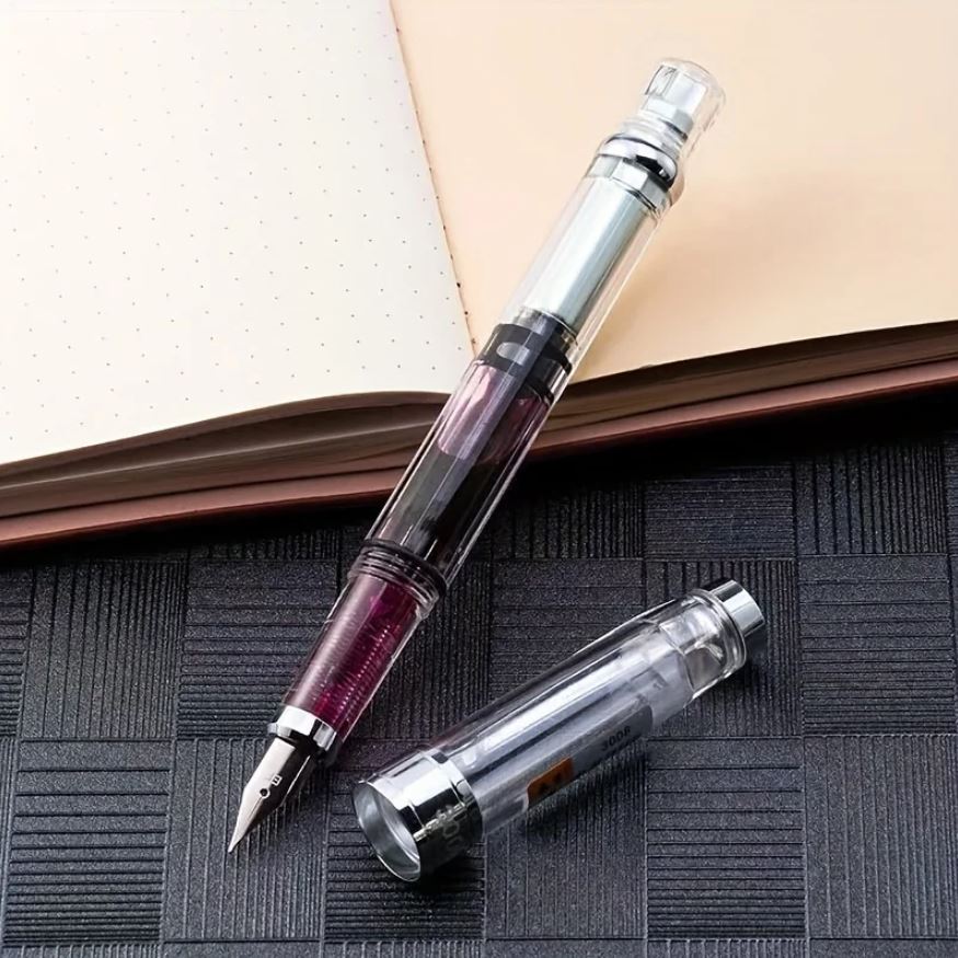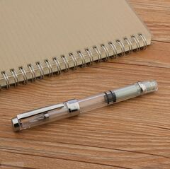 Современная перьевая ручка Wing Sung 3008. Производство Китай. Прозрачный пластиковый корпус, заправка - пистон. Входит много чернил, их уровень всегда можно видеть. Перо стальное, открытое EF (0.38 мм). Длина в колпачке - 14,2 см, длина без колпачка - 13,1 см, толщина - 1,1 см. Вес в колпачке - 21 гр, без колпачка - 14 гр.