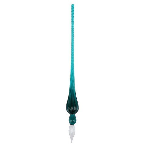 Макательная стеклянная перьевая ручка. Набирает много чернил (если обмакнуть один раз, хватает на страницу), перо М (0.75 мм).